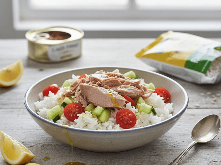 This is the ultimate pantry-staple salad. If you have a pouch of pre-cooked rice and a tin of tuna, you have a high-protein lunch ready in 5 minutes.