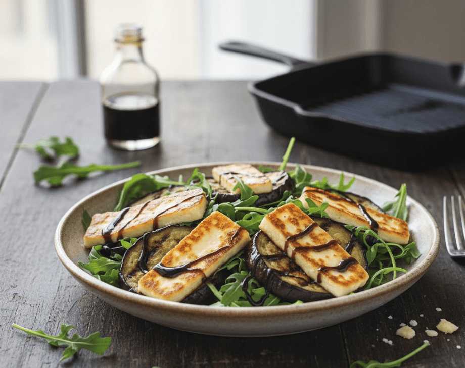 Step 2: In the same pan, sear the halloumi slices for 1–2 minutes per side until crispy.