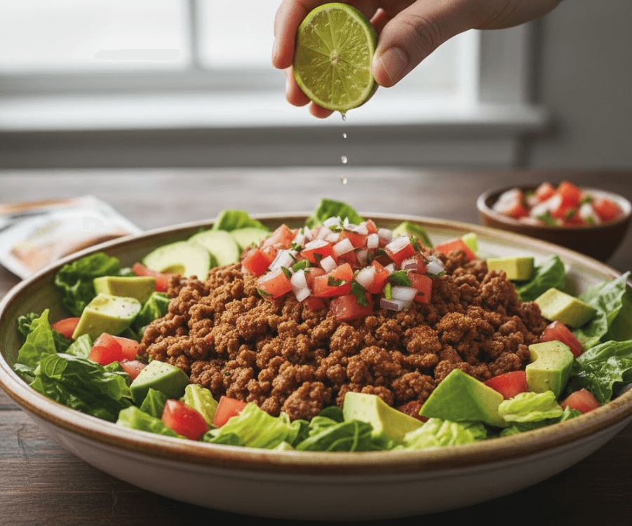 This is the only salad my kids will actually look at without making a face. It’s basically a taco without the mess of the shell.
