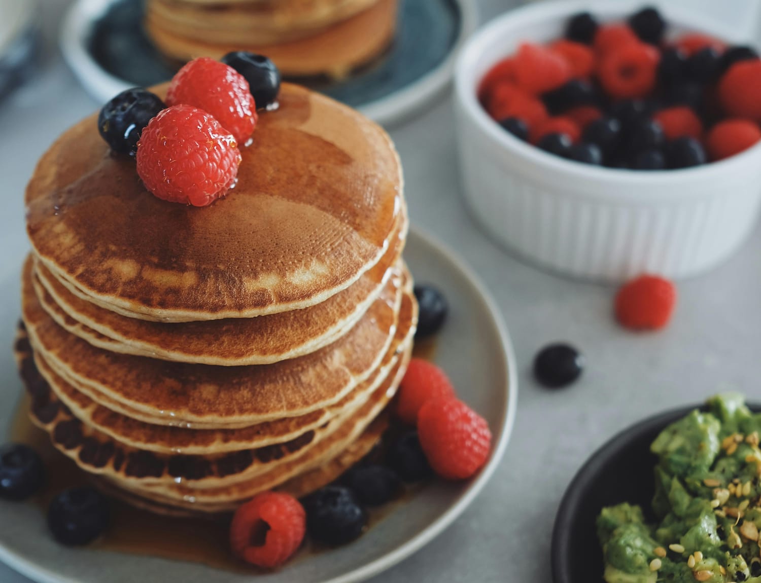 For the Moms: Pair your stack with a black coffee or a tea. The protein in the pancakes will prevent the "caffeine jitters" that happen when you drink coffee on an empty stomach.
